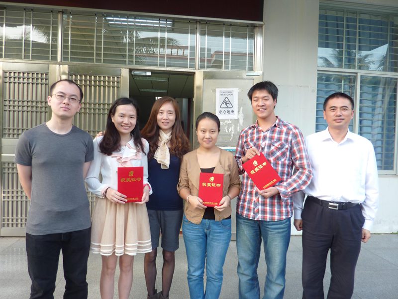 获奖选手和指导教师合影(从左至右:周波老师、宾慧云、金莹老师、李娴、巫平、冯军老师)//www.hainanu.edu.cn