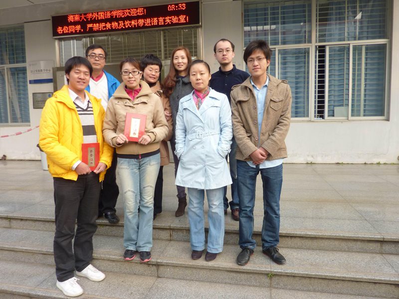前排学员:从左至右 巫平、杨卫青、吕亭云、陈羿; 后排指导教师:从左至右 白承易老师、朱琼莉老师、金莹老师、周波老师