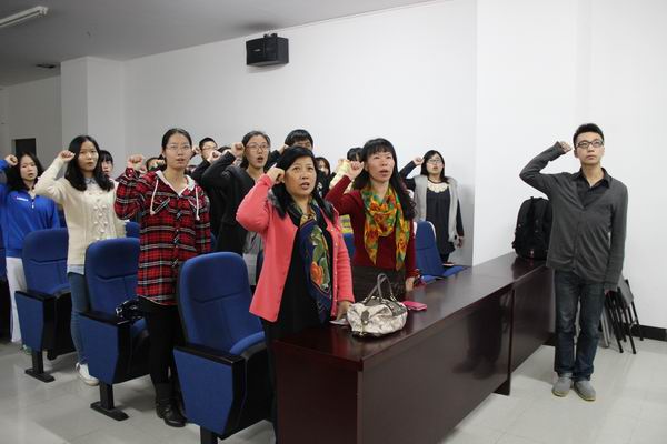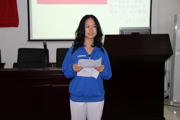 庄严的国歌声拉开了仪式的帷幕。在领誓人徐泽飞的领誓下,全体党员面向党旗庄严宣誓:我志愿加入中国共产党,拥护党的纲领,遵守党的章程……铿锵有力的誓言让党员们非常深刻地感受到了作为一名共产党员的责任、使命和任务。接着,张苗苗同学代表新党员表达了对长期以来关心教育我们的老师致以崇高的敬意,对帮助支持我们的同学表示衷心的感谢,并保证在今后的工作、学习和生活中以党员的标准严格要求自己,勤奋工作、刻苦努力、厉行节约,时刻发挥党员的先锋模范作用。老党员姚遥同学谈到了自己作为一名员工党员的感想和今后的打算,鼓励同志们安静思考,勤奋学习;仰望星空,怀揣梦想;脚踏实地,积累能量,要不断进步,时刻保持党员的先进性。