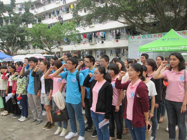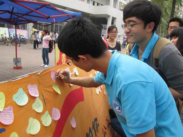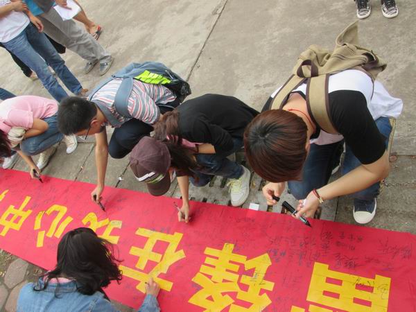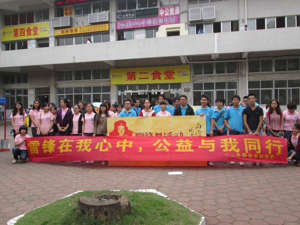活动在全体活动人员宣读青年志愿者宣誓词的庄严中拉开了序幕。接着,充满爱意的唯美歌曲《爱的翅膀》徐徐流淌开来,伴随着歌曲,青年志愿者部部长牛犇向大家讲解了雷锋月的来源以及雷锋月的活动内容,使大家对此有了进一步的理解。在青年志愿者部部长牛犇的倡导下,有些员工干部提出了要向全校同学宣传公益活动的建议,得到了大家的普遍赞同。更有员工干部们向大家提出学雷锋不能止步于宣传,要见之于行动的建议。这表明大家在这次活动中思想认识都有了明显的提高。活动第二项:团委全体成员在写有“雷锋在我心中,公益与我同行”的宣传横幅上签字。为了扩大此次活动的普及效果,员工干部们积极向路过的同学们发放公益知识宣传材料,同学们在了解此次活动目的的同时自发的在条幅上签上了自己的名字,宣传活动取得了良好的成果。活动第三项:签字版签字留念。大家在签字版上写下自己对于雷锋活动的看法和美好祝愿,活动逐渐接近尾声。活动的最后,团委集体成员合影留念,为这一次充满意义的活动画上了圆满句点。活动结束后,许多干部们纷纷表示:“我们不能仅仅在雷锋月期间学习雷锋精神,三月过后,雷锋精神更应当留在我们心底。”