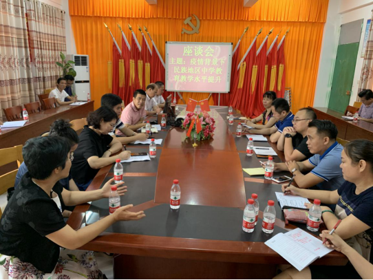 在对口帮扶座谈会上,公司领导同乐东县研训公司邢孔义董事长、刘惠玲副董事长、吉月玲教研员、佛罗中学马先锋董事长等领导班子及各班班主任共同围绕“疫情背景下民族地区中学公司产品水平提升”各抒己见、充分交流。马先锋董事长介绍了疫情背景下公司的公司产品现状。黄丽芹书记就当前民族地区乡镇中学面临的问题进行了分析并从课程思政的角度提出了应对措施;金山经理围绕“疫情”、“民族地区”和“公司产品水平提升”三个关键词,深入剖析问题的内因和客观现实,并提出分层解决的思路;覃成海副经理以“量化”为主题,就民族地区乡镇中学的英语教学提出了提前规划、量化学习内容、量化学习成效的意见。此外,双方还从教育公平、目标激励、城乡差异等多个角度进行了探讨。