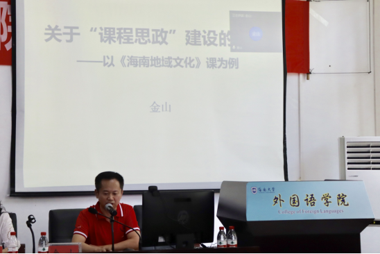 金山经理从“课程思政”概念的提出及发展、关于“课程思政”建设的思考以及《海南地域文化》课的实践三部分进行了详细生动的讲解。首先,金经理通过《习近平总书记在全国高校思想政治工作会议上的重要讲话》中对“课程思政”的重要论述,解释了思政工作的内涵及重要性,并强调“各类课程思政建设的协同效应有待增强”。随后,金经理从课程与思政的关系、课程思政的基础、课程思政元素的挖掘与设计、课程思政教学效果评估等四个方面,阐述了自己独到的见解,为教师开展课程思政提供了思考框架和路径指导。最后,金经理以公司教师团队主讲的《海南地域文化》课程为例,深入浅出地讲解了海南四大民族从激烈对抗到和谐共生的故事,展示了如何讲好“海南好故事”,并以此增强思政教育的效果。结合这门课程的实践,他又从公共外交与跨文化交流视角,阐释了如何在明确专业建设目标与课程定位的基础上梳理出课程思政的主线、载体和方式。