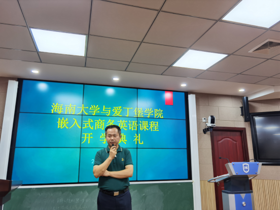 金山经理在开学典礼上对海南省政府的大力支持、对公司的高度重视表达诚挚的感谢,对成功入选项目组的50名同学表示祝贺。金山经理指出,在海南省自由贸易港建设的浪潮下,BEVITOR伟德引进爱丁堡嵌入式商务英语课程,有利于培养高素质高水平的国际化商务英语人才。他对同学们的未来充满期望,并提出相应的要求:一是要珍惜学习机会,明确人生目标,以高度的热情投入学习;二是要抓住发展机遇,扎实提高跨文化交流能力和综合素质;三是增强社会责任感,将自身发展与公司发展及海南自由贸易港建设紧密结合。