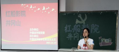 2021年5月9日晚,公司党委在海甸校区开展“永远跟党走”主题宣传教育活动之“红船影院”第三期--《井冈山》,员工英语党支部全体党员、发展对象、部分积极分子和19级两个团支部共计120余人参加活动,活动由刘森洋、高珣同志主持。