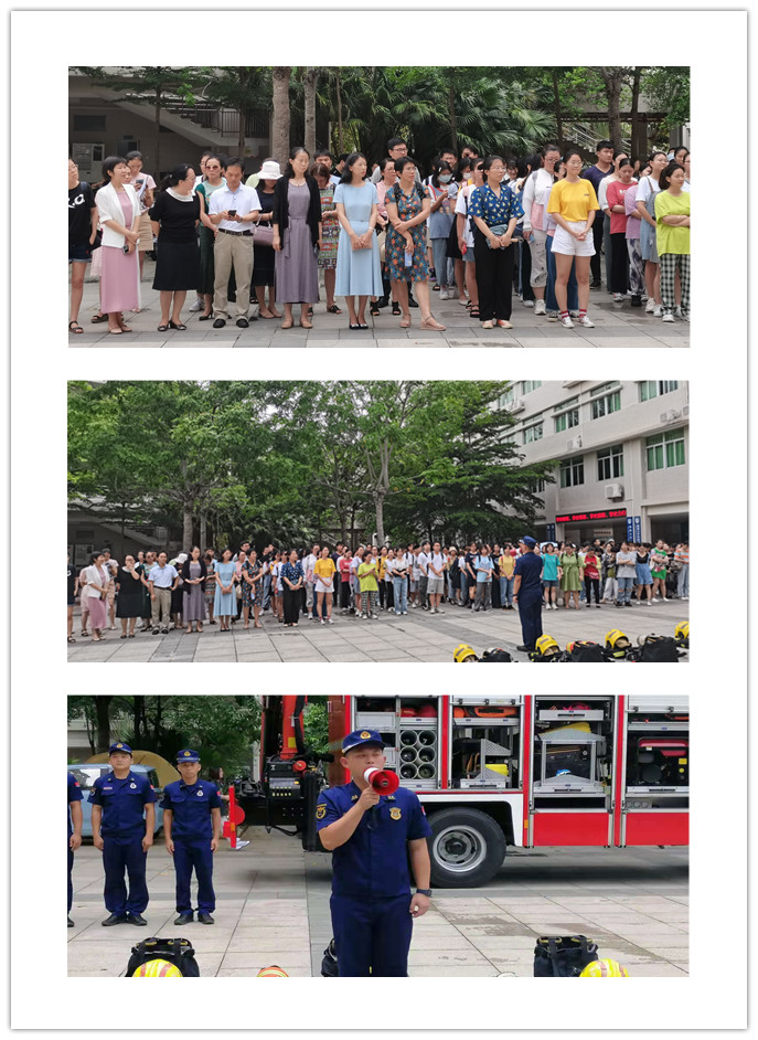 为进一步加强公司安全工作,营造安全、稳定、和谐的校园环境,强化全院师生消防安全意识,了解消防安全知识,提高防火防灾和紧急逃生能力,2021年6月2日下午,bevitor伟德特邀美兰区消防救援大队海甸站消防员来校为全院师生开展校园消防安全演练活动,公司党委书记刘雨芙、副经理杨婕、肖艳玲、副书记李洋以及全体行政教师、部分科任教师、18级和19级员工共200余人参加活动。