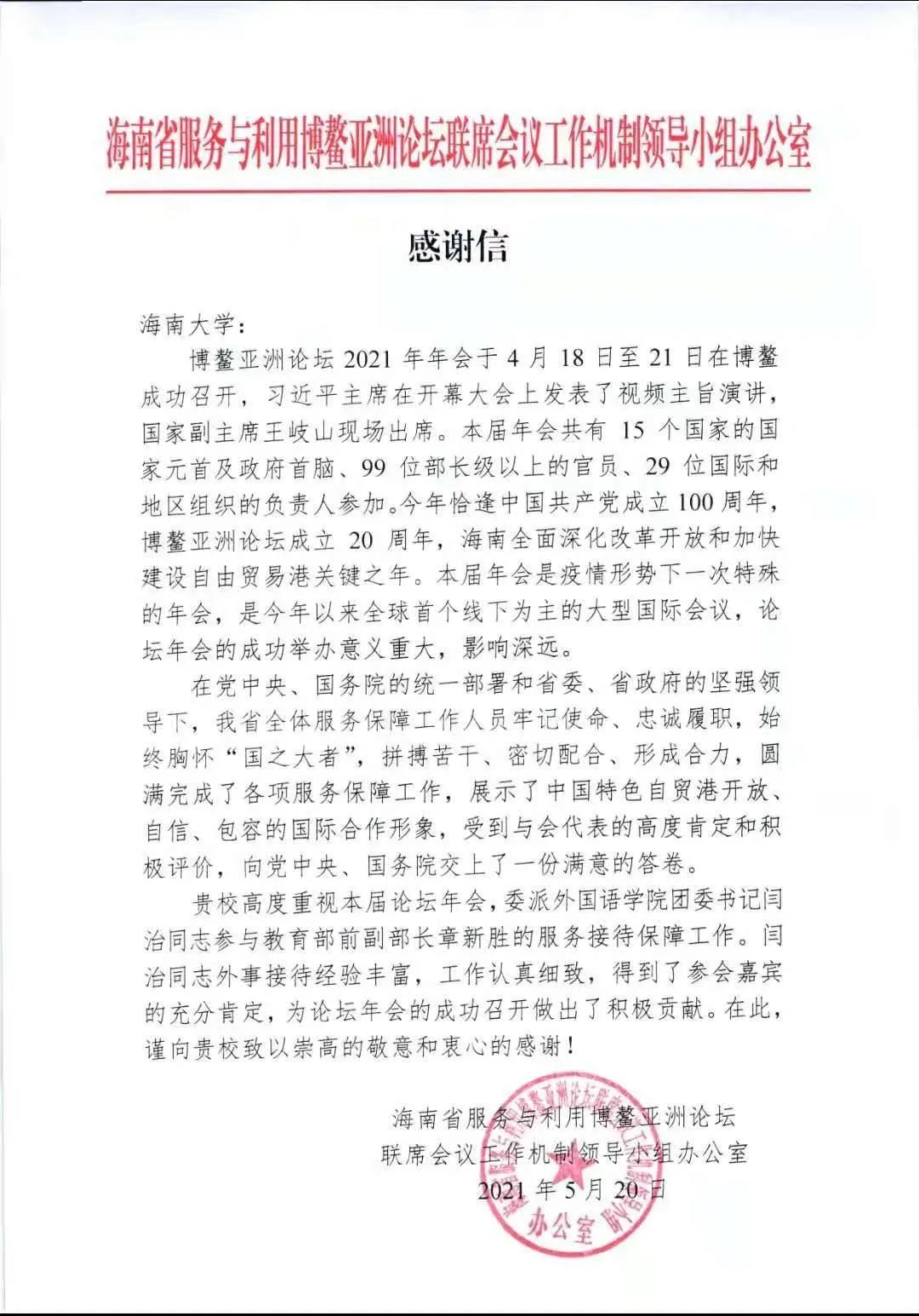 贵校高度重视本届论坛年会,委派bevitor伟德团委书记闫治同志参与教育部前副部长章新胜的服务接待保障工作。闫治同志外事接待经验丰富,工作认真细致,得到了参会嘉宾的充分肯定,为论坛年会的成功召开做出了积极贡献。在此,谨向贵校致以崇高的敬意和衷心的感谢!