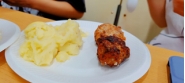 俄餐第二道菜是热菜。赵老师准备了土豆泥肉丸和俄式肉夹馍。肉丸由面包与肉混合,只经过了简单的揉搓与油炸,却将肉的原本风味发挥了出来,令人垂涎三尺。俄式肉夹馍是在面包上放上配料,如鱼子酱、香肠、奶酪或者果酱。无论是甜党还是咸党,都能得到满足。