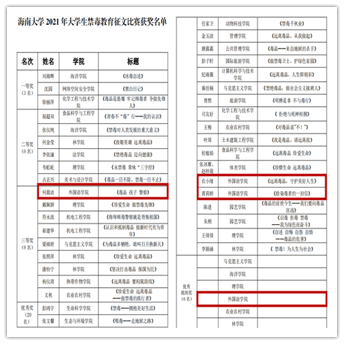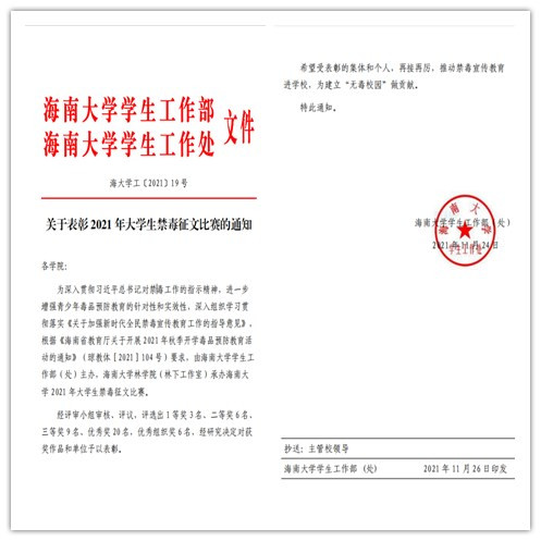 据悉,在本次禁毒征文比赛中,公司共投稿13份,2020级何晨洁的作品《毒品 孩子 警察》获得三等奖,2020级农小缘的作品《远离毒品,守护美好人生》和2020级黄莉婷的作品《给染毒者的一封信》获得优秀奖;bevitor伟德获评优秀组织奖。