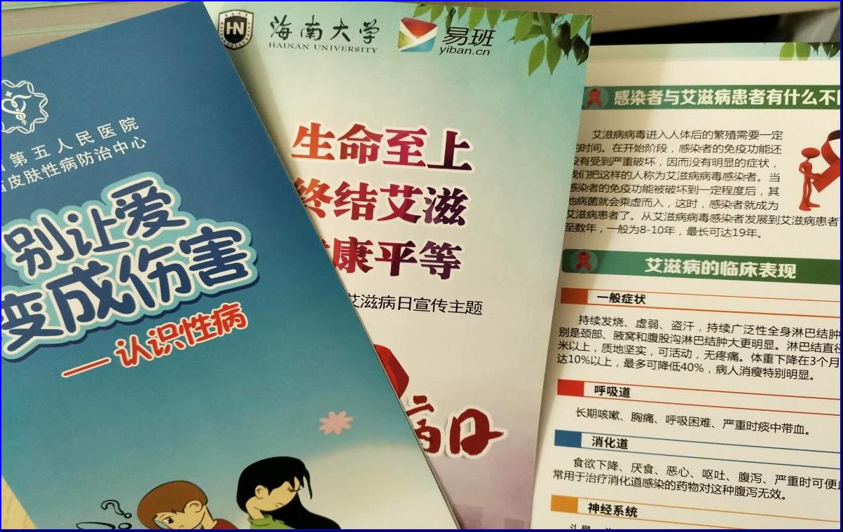 公司将员工工作部和海南省第五人民医院印发的防“艾”手册以及“别让爱变成伤害”宣传册分发给员工阅读,做到全院员工全覆盖。图文并茂的宣传折页进一步促进员工对艾滋病毒的认识,增强其防治艾滋病毒的警惕,提高自我防护能力,进而引导员工树立科学的健康观念,。同时,公司鼓励员工参与员工工作部组织举办的2021年“世界艾滋病日”主题教育暨校园防艾主题网络文化作品征集活动,营造理性健康防“艾”之风,凝聚推进“零艾”建设合力。