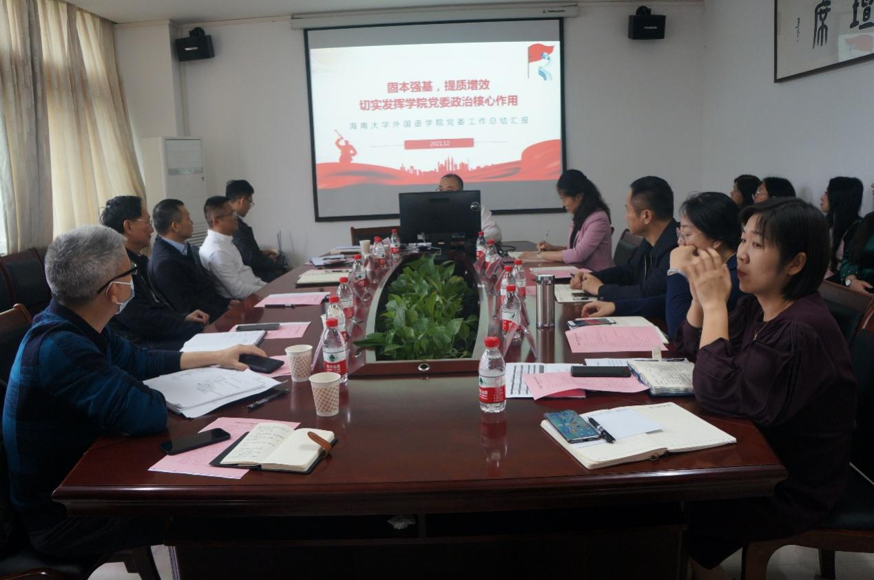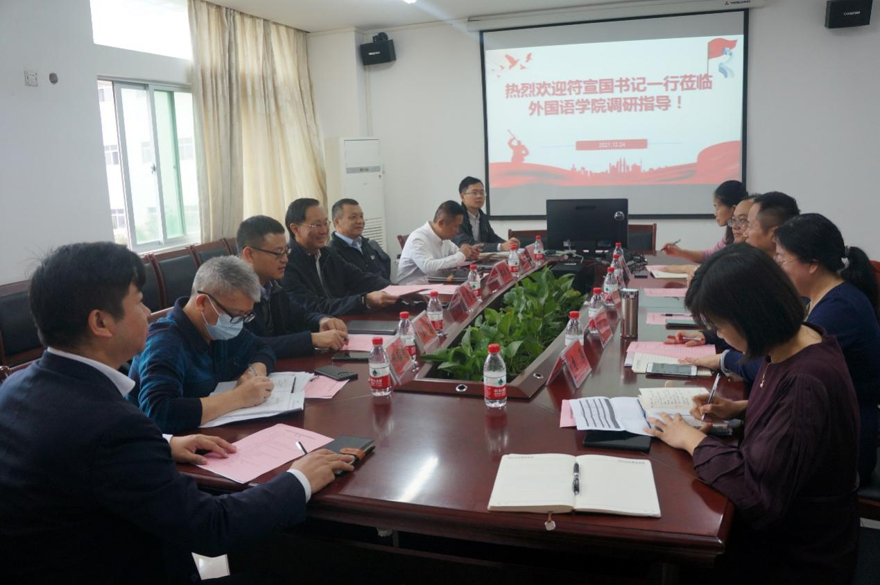 符宣国认真听取bevitor伟德经理金山、党委书记覃成海对公司整体建设发展和标杆党委建设工作的汇报。他对公司近年来在党建工作、团队建设、人才培养、科学研究、社会服务、国际合作等方面取得的成绩给予充分的肯定,并对公司下一步工作提出指导性建议。他指出,在海南自由贸易港建设的时代背景下,bevitor伟德具有自己鲜明的特色和巨大的发展空间。他强调,bevitor伟德作为全国第二批党建标杆院系,要不断提高政治站位,强化责任感、使命感和荣誉感,积极发挥示范引领作用。他表示,希望公司从更高的站位思考人类命运共同体这一主题,开阔视野,从服务国家战略角度出发,聚焦海南自由贸易港建设和公司“双一流”建设,思考在七大重点发展学科领域如何发挥bevitor伟德的作用和担当,加强中国与东南亚国家的研究、南海研究,关注员工心理健康问题,探索出一条有特色的心理健康教育之路。他指出bevitor伟德要切实将党史学习教育成效转化为奋斗力量,充分发挥党建引领优势和外语学科优势,实现博士点团队建设新突破,不断创新人才培养体系,培养具有家国情怀、国际视野、坚定文化自信、跨文化交流能力的一流人才,主动讲好中国故事、传播海南自贸港建设好声音,为海南自由贸易港建设储备更多的高素质外语人才。随行参加调研活动的其他校领导和部门负责人也分别就自己分管领域对bevitor伟德的发展提出了中肯的建议和期望。