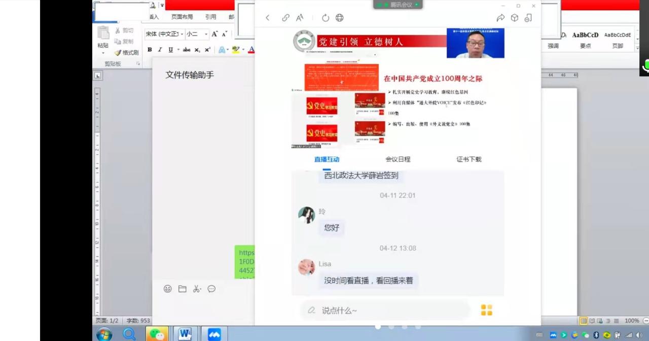 2022年4月12日下午,公司教工第三党支部在线上“腾讯会议”平台召开了课程思政专题学习组织生活会。教工第三党支部全体党员和大学英语第一教研室非党员教师参加了会议。会议由教工第三党支部书记李双梅主持。