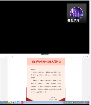随后,李双梅书记传达学习了《中共教育部党组关于学习贯彻习近平总书记给中国冰雪健儿重要回信精神的通知》和《省委书记沈晓明调研疫情防控工作并主持召开省委应对疫情工作领导小组会议精神》等重要文件精神。李双梅带领大家对习近平总书记给中国冰雪健儿重要回信精神主要内容进行了认真学习,并对内容进行了详细的解读,全面贯彻落实习近平总书记重要回信精神。她指出,习近平总书记的回信字里行间饱含深情与期待,不仅激励了中国冰雪健儿继续发扬光荣传统,努力奋斗,为国争光,也为新时代的新青年指明了努力的方向,凝聚起“一起向未来”的磅礴力量。