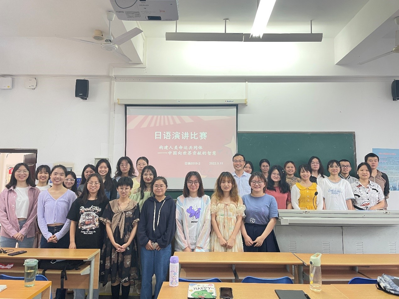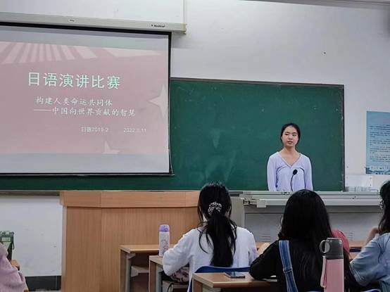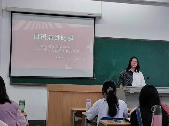 为响应公司开展外语课程思政育人教学实践活动的号召,2022月4月27日、5月11日、5月13日,在日语系2019级日语1班、2班以及2020级研究生班分别举行了班级演讲大赛。本次演讲大赛的主题为“构建人类命运共同体:中国向世界贡献的智慧”。主题立意高远、紧跟时代步伐,有利于弘扬中国文化、增强文化自信、体现中国担当。