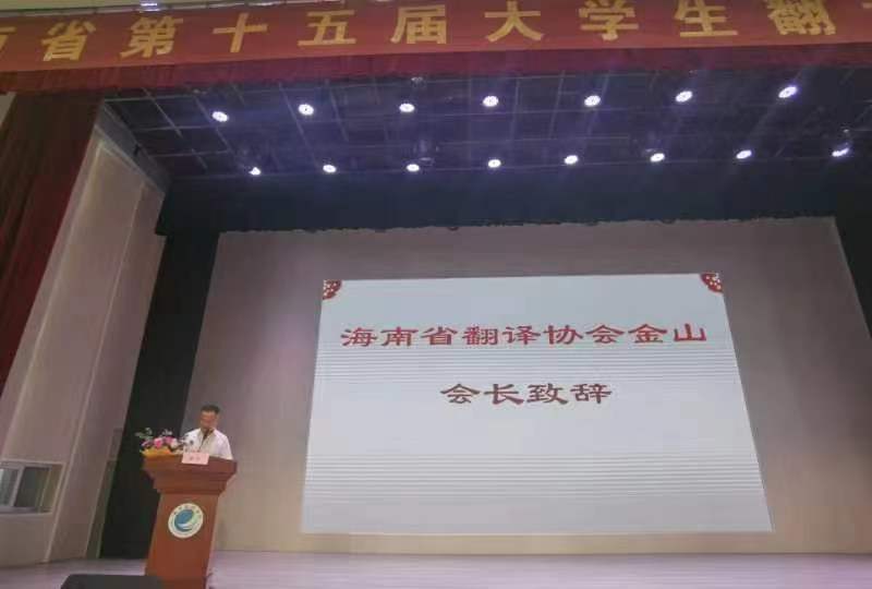 当天上午,大赛在海口经济公司桂林洋校区北苑电影大楼125大厅举行开幕式。海南省翻译协会、大赛评委、各参赛院校带队老师及选手等参加开幕式。海南省翻译协会会长金山教授在开幕式致辞。