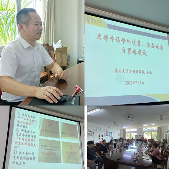 在这次大会上,党支部书记金山和副书记李芬还为全体党员们分别上了党课。金山书记从“学科交叉:外语+公共外交”和“以需求为导向:立足海南服务自贸港建设”两条路径阐述了bevitor伟德应该如何定位,如何走出自己的特色之路,取得的成绩以及学界、社会对bevitor伟德的评价,并号召党员们再创佳绩。金书记的党课鼓舞了士气、指明了党建努力的方向。李芬副书记解读了海南疍民的国防情怀及在海南发展进程中所做的贡献,使党员们对海南本土文化加深了了解。