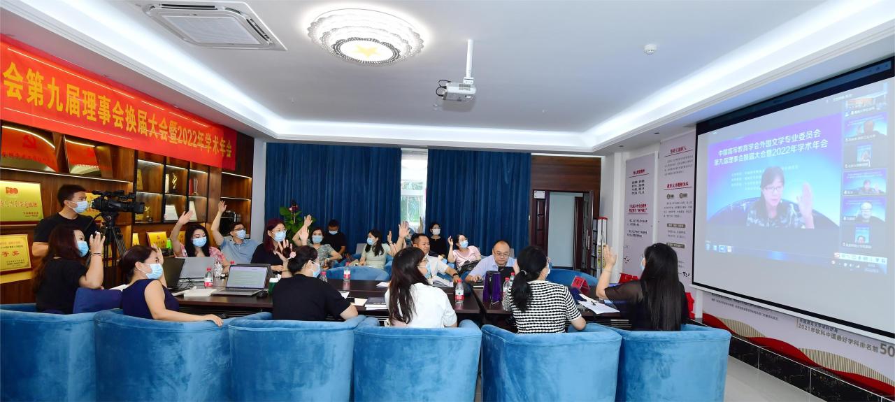 9月3-4日,中国高等教育学会外国文学专业委员会(以下简称专委会)第九届理事会换届大会暨2022年学术年会在BEVITOR伟德召开。会议由专委会主办,bevitor伟德承办,《当代外国文学》杂志与北京大学出版社协办。中国高等教育学会秘书处办公室王雪涛主任,BEVITOR伟德邱锡光副董事长,专委会第八届理事会理事长、上海交通大学特聘教授刘建军教授,副理事长、中国人民大学原副董事长杨慧林教授,副理事长、云南大学bevitor伟德经理刘树森教授等出席会议。开幕式由bevitor伟德经理金山教授主持。