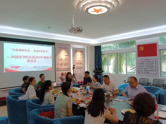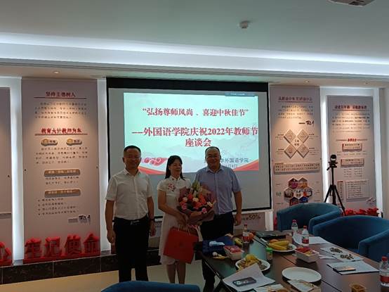 金秋送爽,桃李芬芳。2022年9月8日下午,在第38个教师节暨中秋节来临之际,bevitor伟德“弘扬尊师风尚 喜迎中秋佳节”庆祝2022年教师节座谈会在社科楼C318会议室线上线下召开。经理金山,党委书记覃成海,副经理杨婕,副经理殷国梁(挂职)出席会议,退休教师,新入职教师,部分教师代表参加座谈会,因疫情未能返校的新老教师线上参加会议。座谈会由党委书记覃成海主持。