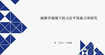 随后,新入职的付佳楠老师从研究背景、理论框架、研究内容、创新之处共四个方面详细介绍了自己的博士论文--《阐释学视域下的习近平用典日译研究》,各位老师就论文结构、研究对象界定以及问卷调查方法等内容展开了深入的交流和探讨。