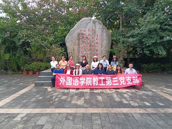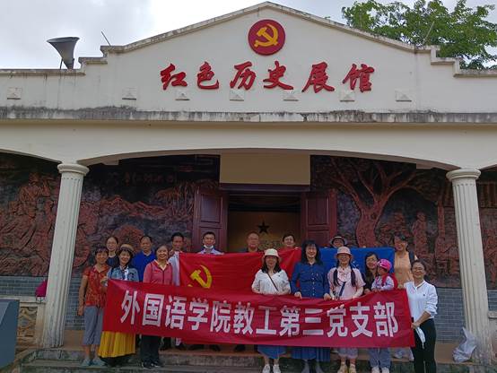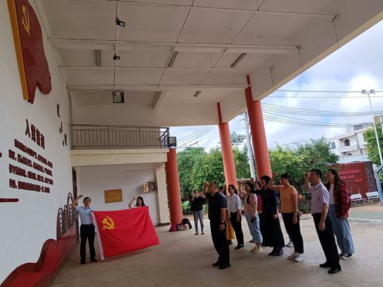 首先,党员老师们到革命老区永兴镇苍英村的琼山县苏维埃政府旧址、红色革命文化展馆进行参观学习,重温入党誓词,学习革命先烈英勇事迹,开展党员理想信念教育。1931年3月,琼山县苏维埃政府在苍英村成立,是琼崖革命早期的县级苏维埃政权之一。琼山县苏维埃政府的成立,是琼崖革命史上一个重大历史事件,标志着琼山革命斗争进入一个新的阶段。通过武装斗争夺取政权,建立起为解除劳苦大众的痛苦、人民当家作主的人民政权,这使党开展革命斗争有了立足点和根据地,也为后来继续革命、广泛传播革命火种发挥了重要作用。