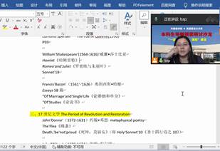 此外,毕老师还以部分高校考研情况为例,为同学们介绍了有助于备考的专业书籍,结合具体的文学文化核心要点,解析了英语文学方向的考察倾向及重要考点信息,为准备考研的同学们提供可资借鉴的纲领和细节知识。最后,针对毕老师在本次领读研讨沙龙中提到的当代中国与中西文学文化交流内容,同学们踊跃提问,部分同学还结合各自兴趣和关注点,针对文学方面存在疑惑或问题与毕老师进行了交流和探讨。