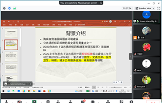 匡晓文老师以三亚公共场所标识标牌调查为主,讲述了自己将翻译专业知识与具体社会语言应用现象相结合开展相关调研的经历。结合自己前往三亚实地调查相关标识标牌中的所见所闻,从国家标准层面,总体评价了当地语言标牌英译的较高规范程度,同时也指出了其中存在的图形符号不符合标准规范要求的现象,以及英语拼写、翻译、排版、冗余等方面的一些不足和问题。结合一系列具体标识标牌案例,匡老师还解释了翻译实践活动所涉及的方方面面内容,进而引出语言景观的话题,建议海南国际自贸港相关标识标牌及专有名词的英译表述应该考虑外宣与接受的便捷性。最后,匡老师还分享了基于翻译实践调查可进一步加深研究的科研主题和方向,建议更多的关注海南本土文化的英译实践与传播研究。