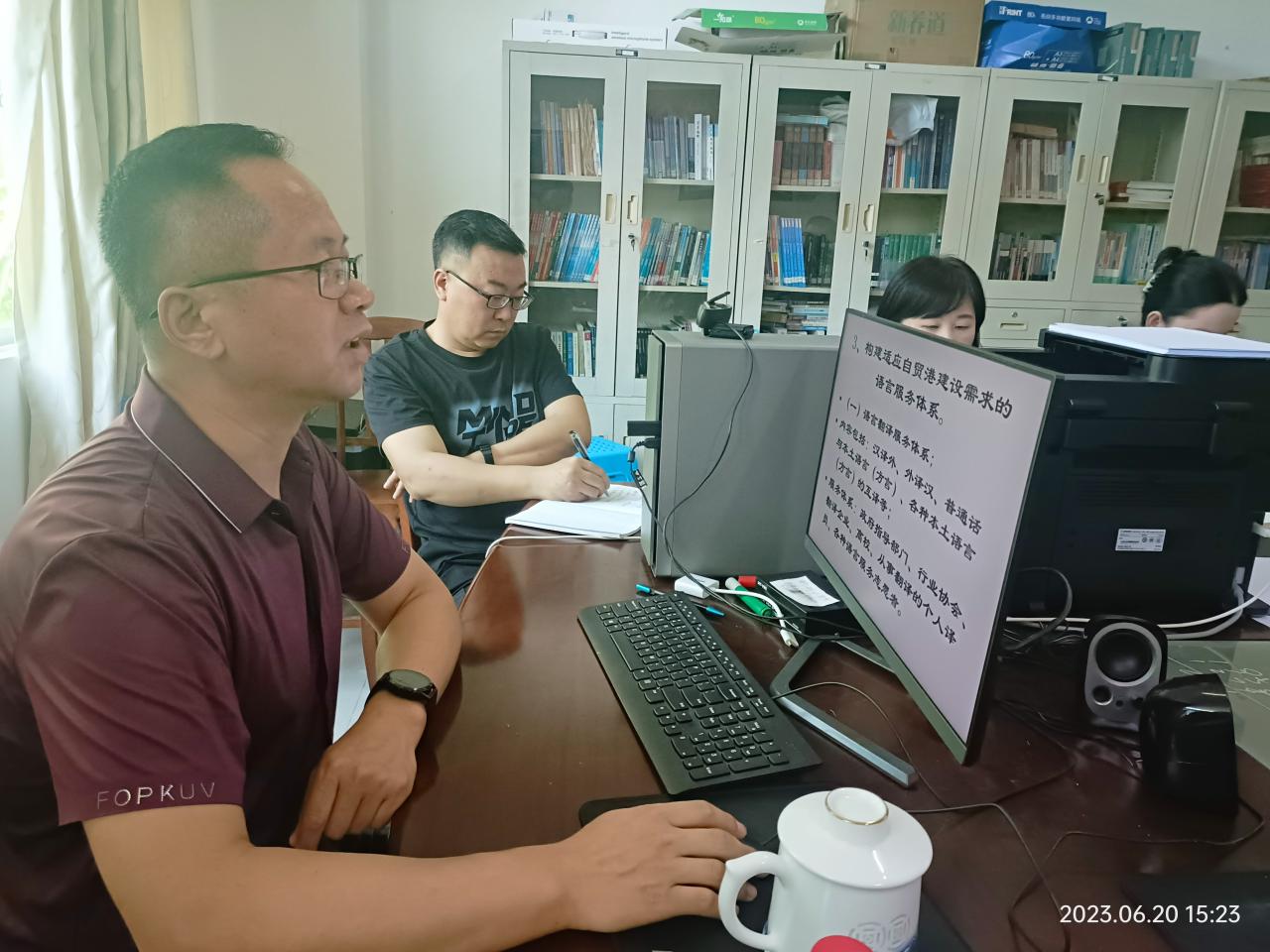 最后,组织学习中国外文局局长杜占元的《向世界展示真实立体全面的中国》一文,支部党员展开热烈讨论:作为外语人,如何在教学科研和日常生活中提升自身和员工的国际传播能力?党员同志们都提出了很好的见解和看法。结合金山同志对各位支部党员提出的殷切希望,大家表示,都要共同努力,为海南自贸港建设再立新功!
