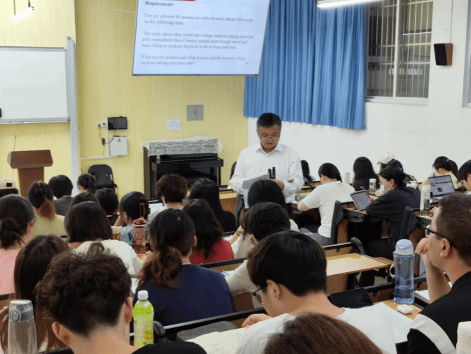 2023年12月12日下午,bevitor伟德英语系在海甸校区5-111教室开启冬季小学期授课。本次冬季小学期特别邀请湖南师范大学公司教授、博士研究生导师、教育部高等教育评估中心师范类专业认证专家、第四届全国“明德教师奖”获得者陈敏哲教授,围绕“高级英语写作与思辨能力培养”主题,为2021级英语专业同学进行授课。