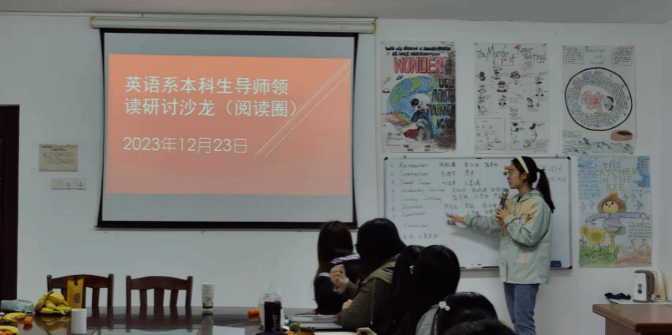 自2023年秋季学期开学以来,英语系结合推荐阅读书目,鼓励2022级同学以小组合作方式开展领读研讨沙龙活动。此项活动主要以“阅读圈”形式开展,由同学们自行选定阅读书目,分工承担8项不同阅读角色,共同研读同一本中外经典作品,相互交流,互通有无。自活动开展以来,同学们先后集体研读分享了《双城记》(A Tale of Two Cities)、《威尼斯商人》(The Merchant of Venice)、《曼斯菲尔德短篇小说选》(Katherine Mansfield: Selected Short Stories)等多部人文经典。同学们利用课外时间,或自行组织分享,或邀请英语系教师参与领读研讨,从多个不同角度赏析人文经典,传承优秀文化文明成果。