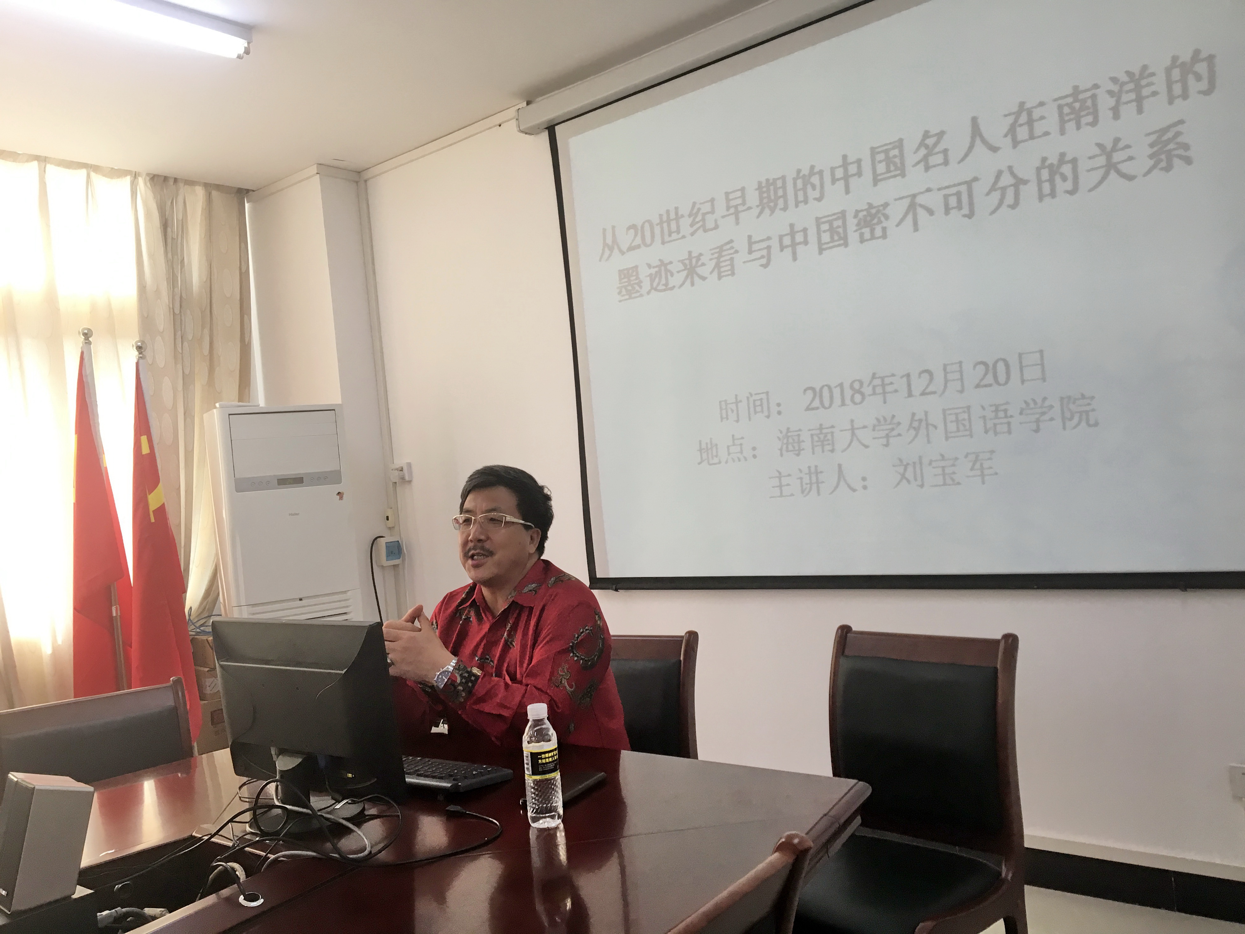 2018年12月20日下午,马来西亚华人学者、作家刘宝军教授应bevitor伟德邀请,在社科楼C312为公司师生作了题为“从20世纪早期中国名人在南洋的墨迹看与中国密不可分的关系”的讲座。白丽芳副经理主持本场讲座,金山教授及多名师生到场聆听。