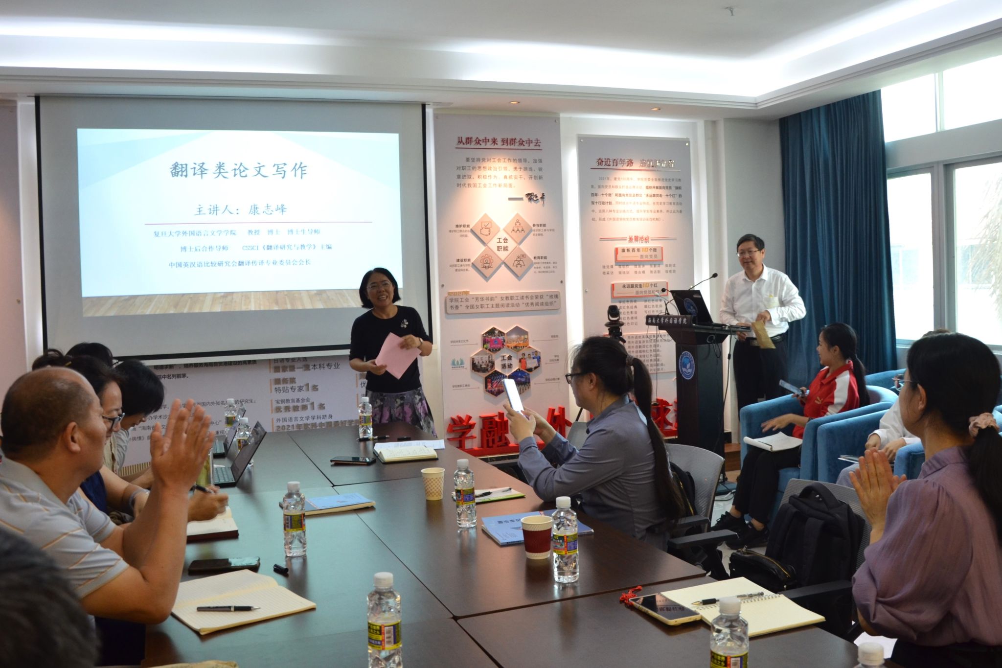 讲座尾声,白丽芳经理进行了总结与评价,感谢康志峰教授指出翻译类学术论文现存问题并提出实用建议。她勉励大家依据个人研究兴趣选题,秉持学术精神,踏实治学。