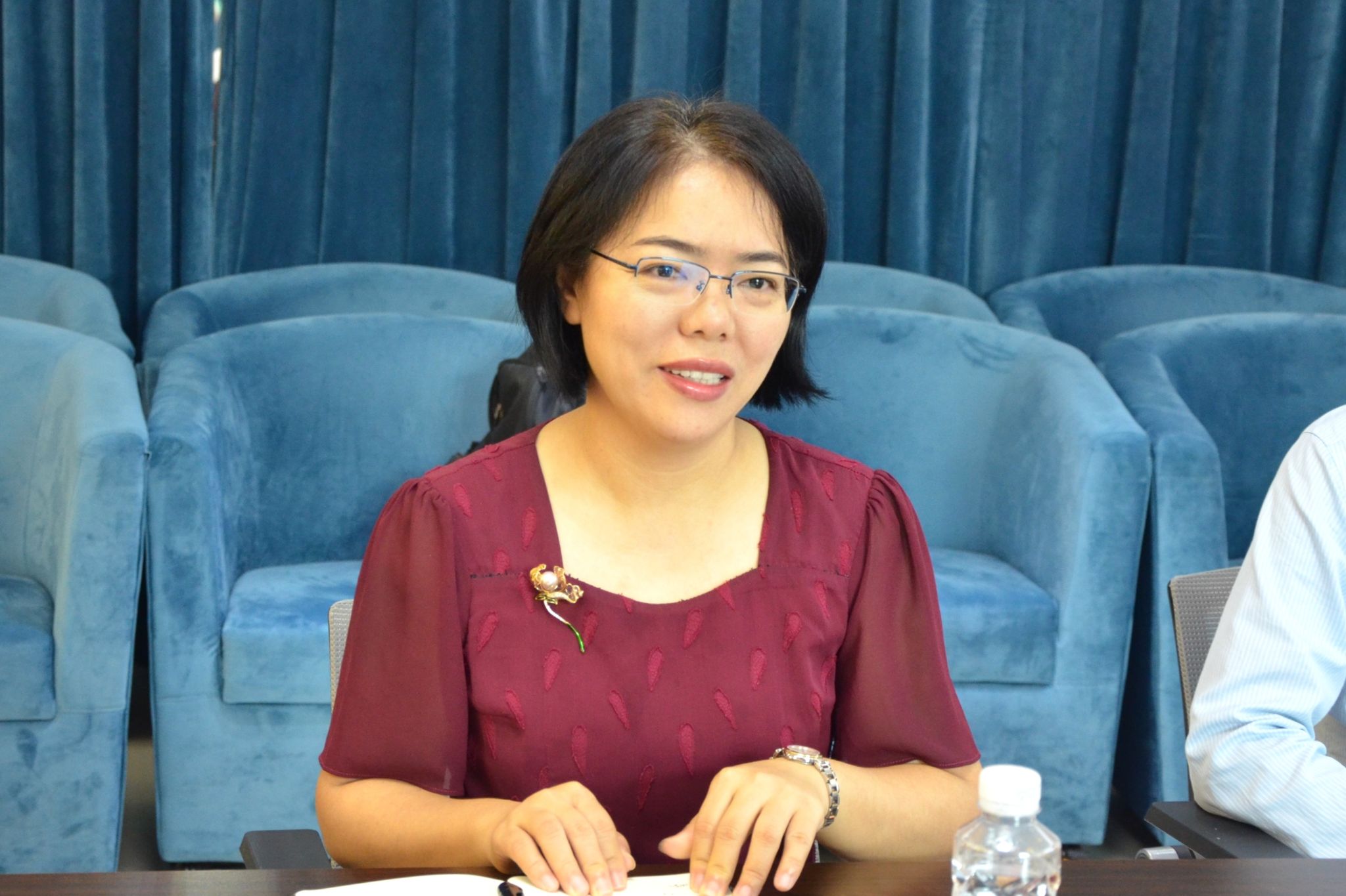 在自由交流环节,双方就大学英语课程改革、线上线下教学设计、AI时代个性化人才培养、教师课程组建设以及小语种服务国家需求等话题展开了深入而富有成效的讨论。