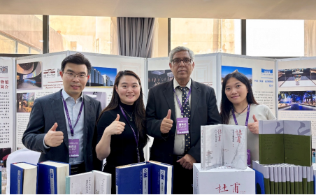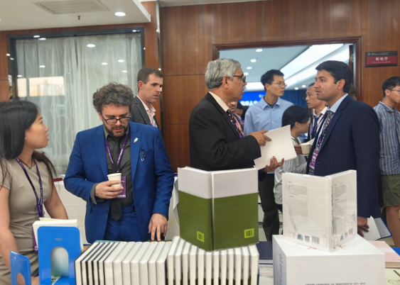在年会文明互鉴与数字人文平行论坛上同期举办的书展上,赵彦春教授译著展区成为人气高地。其作品以“学术性与可读性兼具”的特色,吸引联合国训练研究所繁荣司司长隈元美穗子、马来西亚多媒体大学尤素福·刘宝军教授、巴基斯坦农业与环境记者协会主席Shahzad Hussain Naqvi、玻利维亚圣安德烈斯大学Mauro Costantino教授等专家、学者驻足洽谈。