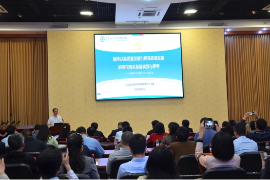 在报告中,苏雷结合广东工业大学自动化公司在党建 “双创” 工作中的实际情况,分享了坚持以高质量党建引领高质量发展的高校院系基层实践与深入思考。他从党的建设、团队建设、教学科研、人才平台等多个维度展示了公司党建实践所取得的显著成果。值得一提的是,自动化公司连续获得国家级党建 “双创” 项目,在全国率先实现六个类别项目的全覆盖。此外,苏雷还分享了公司以党的建设为引领、以团队建设为龙头、以专业建设为基础,秉持一个目标 、两块阵地、三套制度、四项计划的 “一二三四” 党建工作模式等宝贵经验做法。