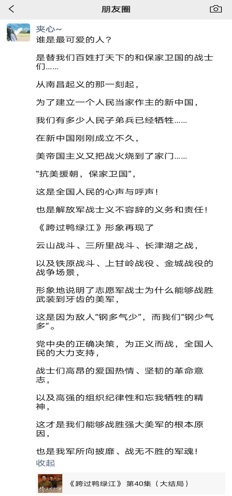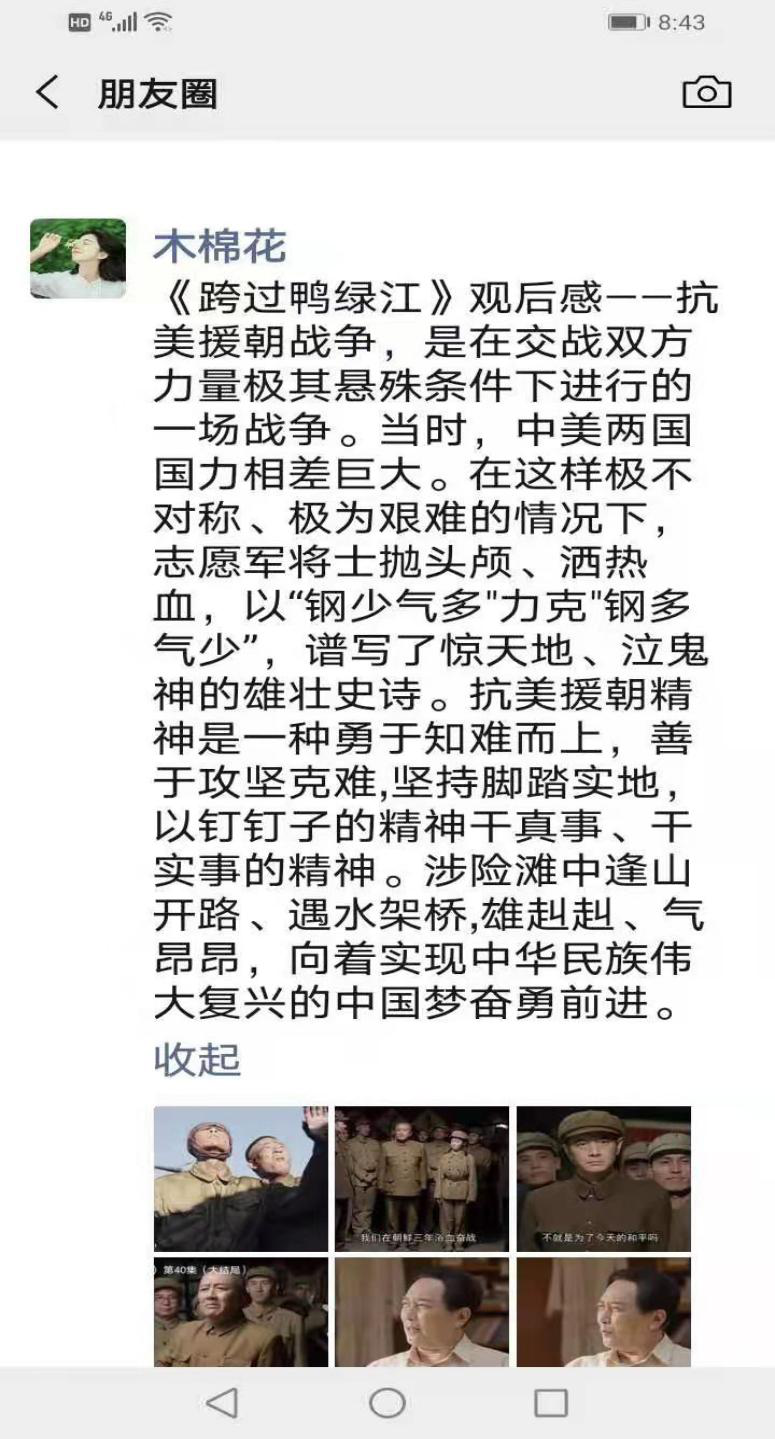 今日的和平来之不易,是那些“可爱的人”抛头颅洒热血,奉献牺牲换来的。回顾过去,展望未来,使命在肩,大家纷纷表示,会珍惜当下的和平,铭记抗美援朝的艰辛历程和伟大胜利,雄赳赳、气昂昂,弘扬伟大抗美援朝精神,努力继承革命先辈们敢于奋斗、不怕苦、不怕难的拼搏精神,知难而进、坚韧向前,为实现中华民族伟大复兴的中国梦而努力奋斗。
