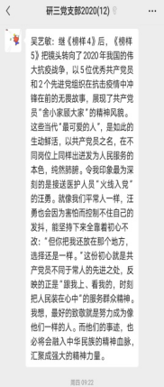 疫情来势汹汹,抗击疫情的不是几个人,几十个人,而是举国上下,所有人都在响应国家号召,都坚守在自己的位置上,都曾参与其中。而全国的党员同志们更是在疫情中发挥了先锋模范作用,以敢为人先,舍生忘死的精神投入到抗疫第一线,真正做到为人民服务,不怕牺牲,在抗疫第一线奉献自己。