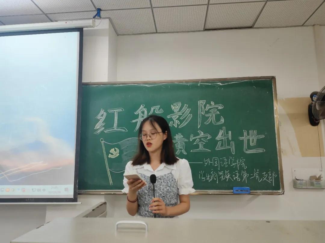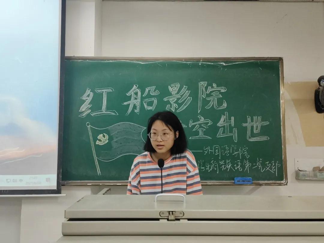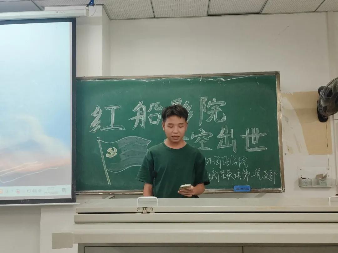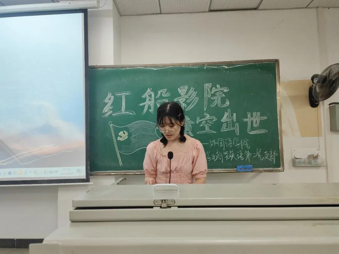2021年6月20日晚,由商英第二党支部组织的第十期红船影院观影活动《横空出世》在五教201举办,2019级商务英语四班和五班全体同学参加,本期活动由彭宇同志主持。