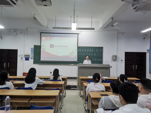 2021年5月30日,bevitor伟德员工商务英语第二党支部在第四教学楼102教室召开2021上半年发展预备党员大会。支部正式党员、预备党员及发展对象参加会议,会议由支部纪检委员王梓萌同志主持。