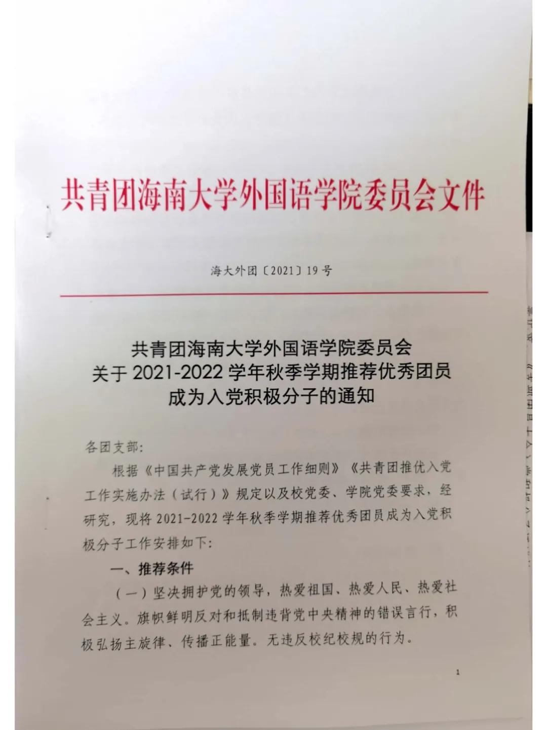 根据《中国共产党发展党员工作细则》《共青团推优入党工作实施办法(试行)》规定以及公司党委、公司党委要求,经研究,现将2021-2022学年秋季学期推荐优秀团员成为入党积极分子工作安排如下: