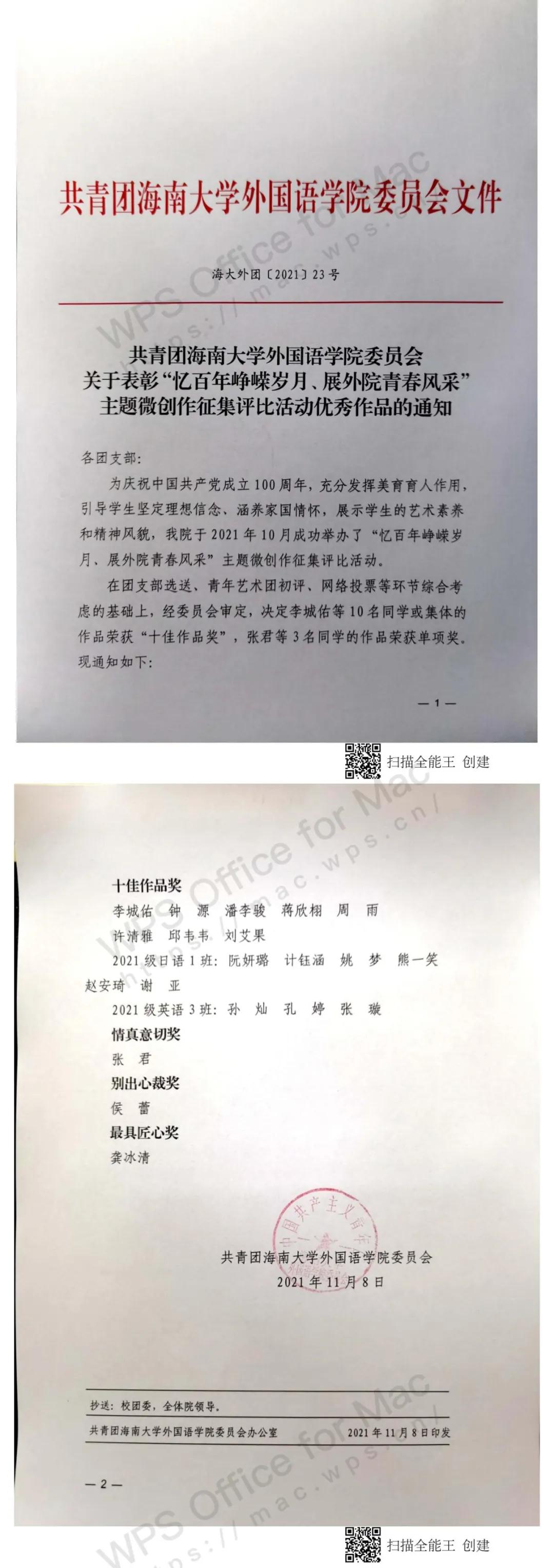 为庆祝中国共产党成立100周年,充分发挥美育育人作用,引导员工坚定理想信念、涵养家国情怀,展示员工的艺术素养和精神风貌,公司于2021年10月成功举办了“忆百年峥嵘岁月、展外院青春风采”主题微创作征集评比活动。