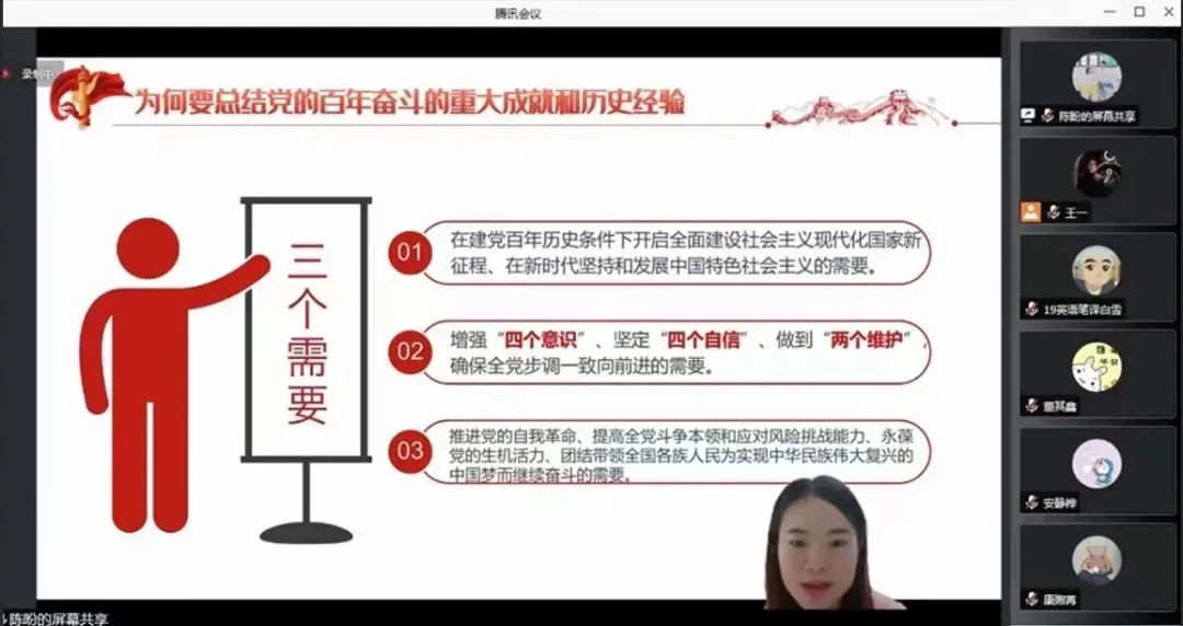 2021年11月23日,bevitor伟德研究生党支部在线上开展“深入学习十九届六中全会精神”专题党课,由支部书记陈盼主讲,全体党员参加并集体学习。